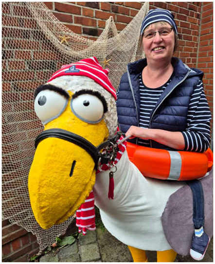 Fiete ist eine verrückte Laufmöwe, die es der Reiterin nicht leicht macht. Ein witziger Walking Act mit kleinen Showeinlagen. Ideal für ihr Stadtteilfest, ihren Umzug oder sonstige Outdoor-Veranstaltung.